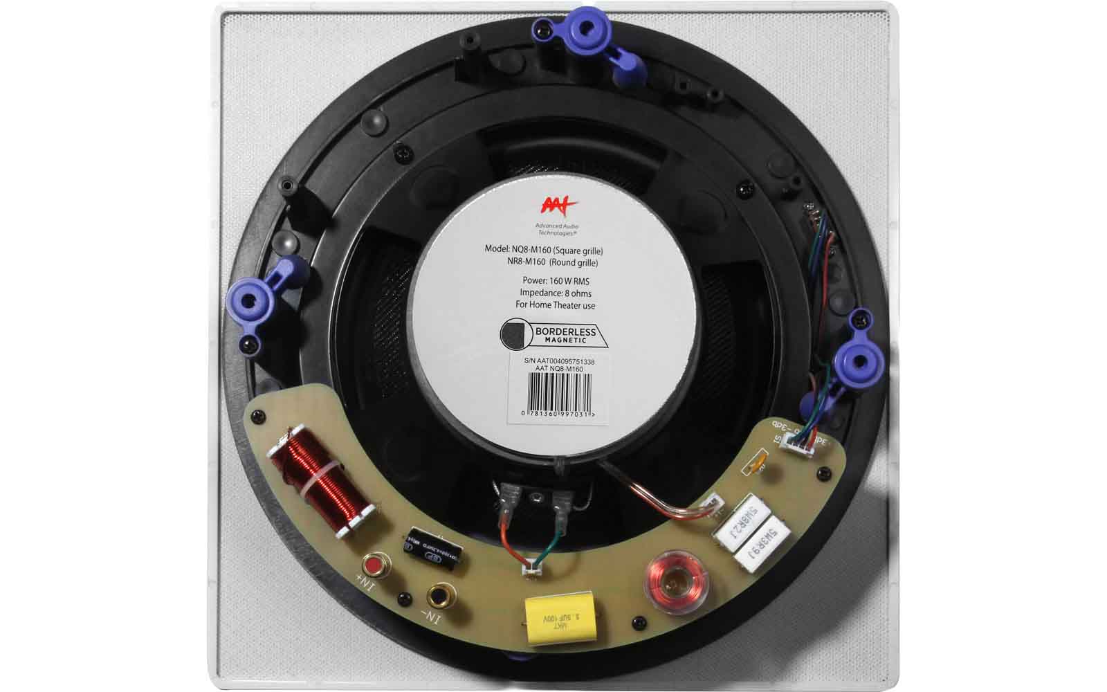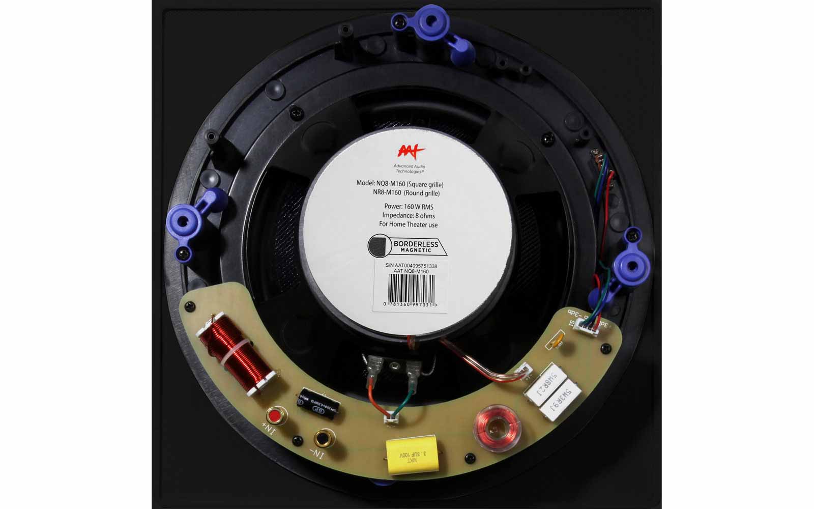 As caixas acústicas de embutir com tela quadrada AAT NQ8-M160 e com tela redonda AAT NR8-M160 apresentam tweeter pivotante (móvel) de domo de seda de 1 polegada, permitindo um melhor direcionamento das altas frequências para os ouvidos dos espectadores distribuídos em um ambiente de home theater.