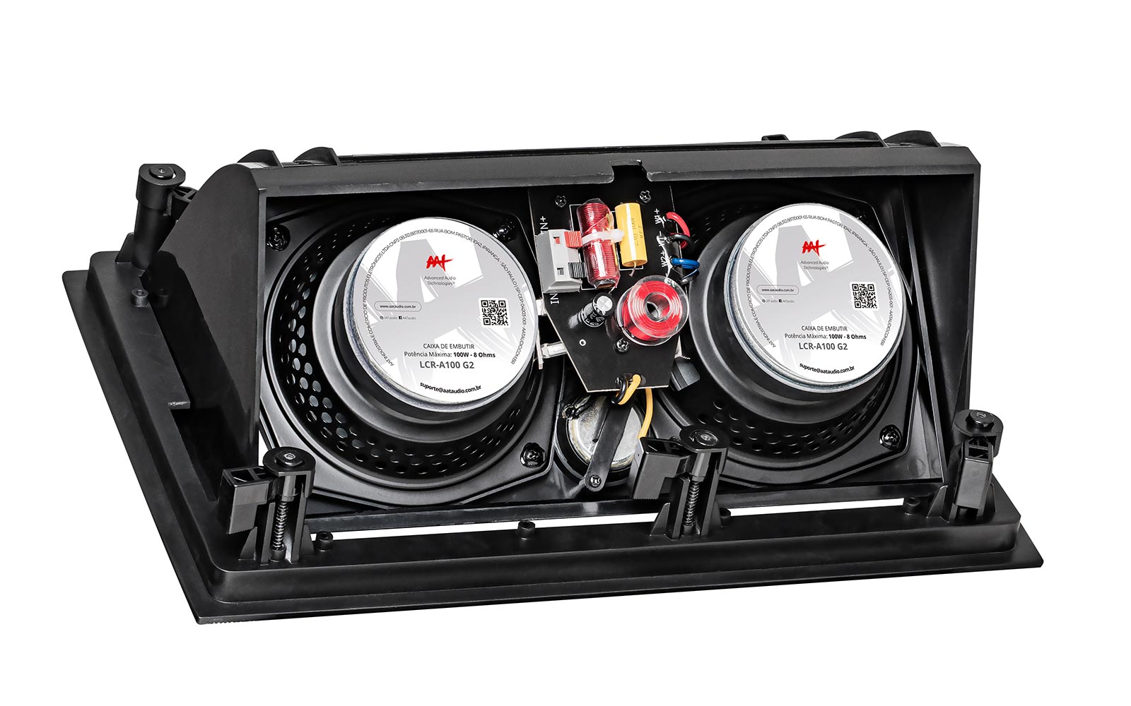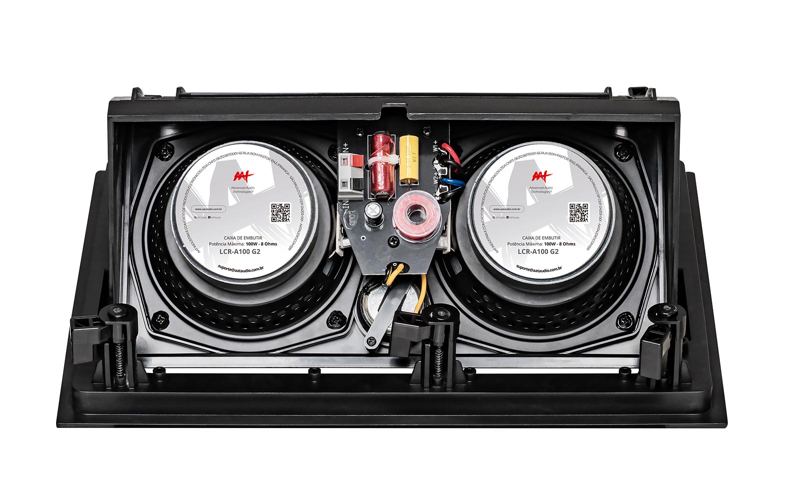 A AAT LCR-A100 G2 apresenta 2 woofers de 5 ¼ polegadas, fabricados com material composto de polipropileno (PP) e mica (superior ao Kevlar); e tweeter de domo de seda de 1 polegada com resposta até 22 KHz. A potência máxima é de 100W RMS.