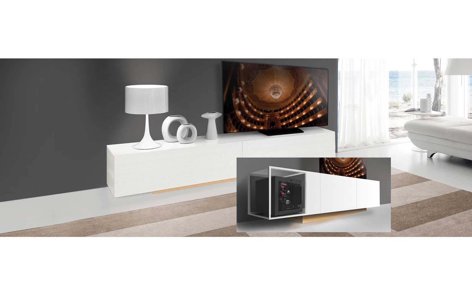 Quer montar um sistema de home theater que não comprometa o visual do ambiente? Pensando em quem gosta de deixar a tecnologia oculta, mas não abre mão da mais alta performance na reprodução dos sons graves, a AAT desenvolveu a linha de subwoofers CUBE INVISIBLE. Companheiros ideais das caixas de embutir no quesito elegância com total discrição, esses produtos apresentam um conceito inédito e inovador tanto no mercado brasileiro quanto internacional. Diferente de todos os outros subwoofers, os dois modelos dessa linha foram projetados para ficar dentro de um móvel sob medida com fundo falso, que permita fixá-los à alvenaria. Essa é a solução ideal para que os graves não façam vibrar a estrutura do móvel.